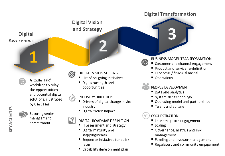 We view Digital Transformation as a staged approach that is more of change in business process than digitization, thus its success will rely on setting the right tone and transforming the business…